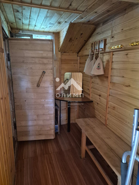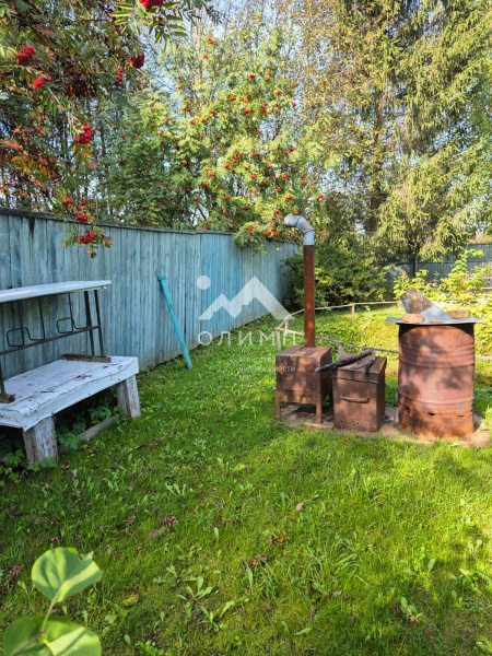 На территории есть небольшая банька, вместительный сарай с хозяйственным инвентарём (лопаты, грабли, ведра, лейки, садовые тачки), удобный отдельно стоящий туалет, деревянная веранда со столом и скамейками, обвитая плющом. Колодец, 6 колец. Металлическая теплица с поликарбонатом.