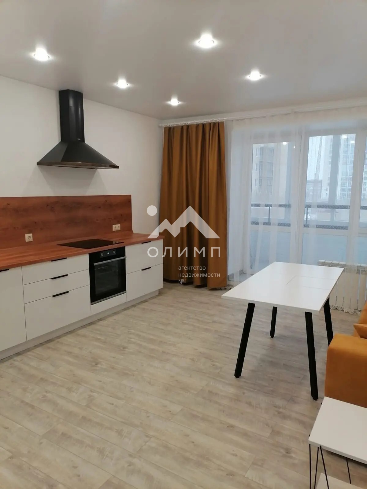 В квартире остается кухонный гарнитур с варочной панелью, духовым шкафом и посудомоечной машиной.