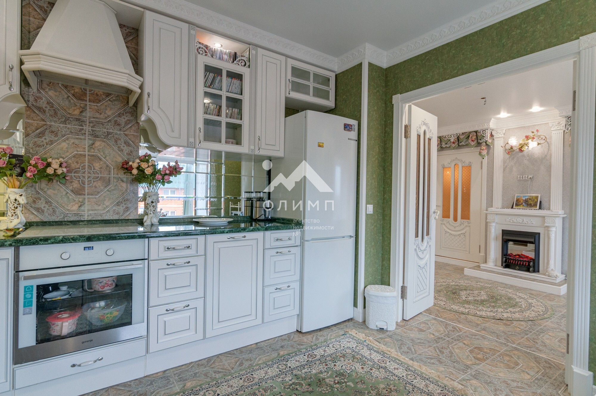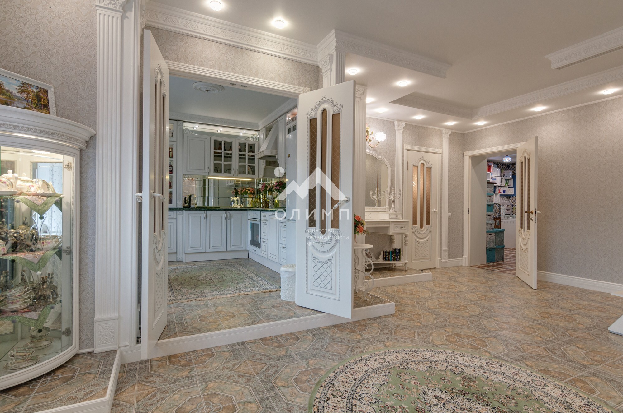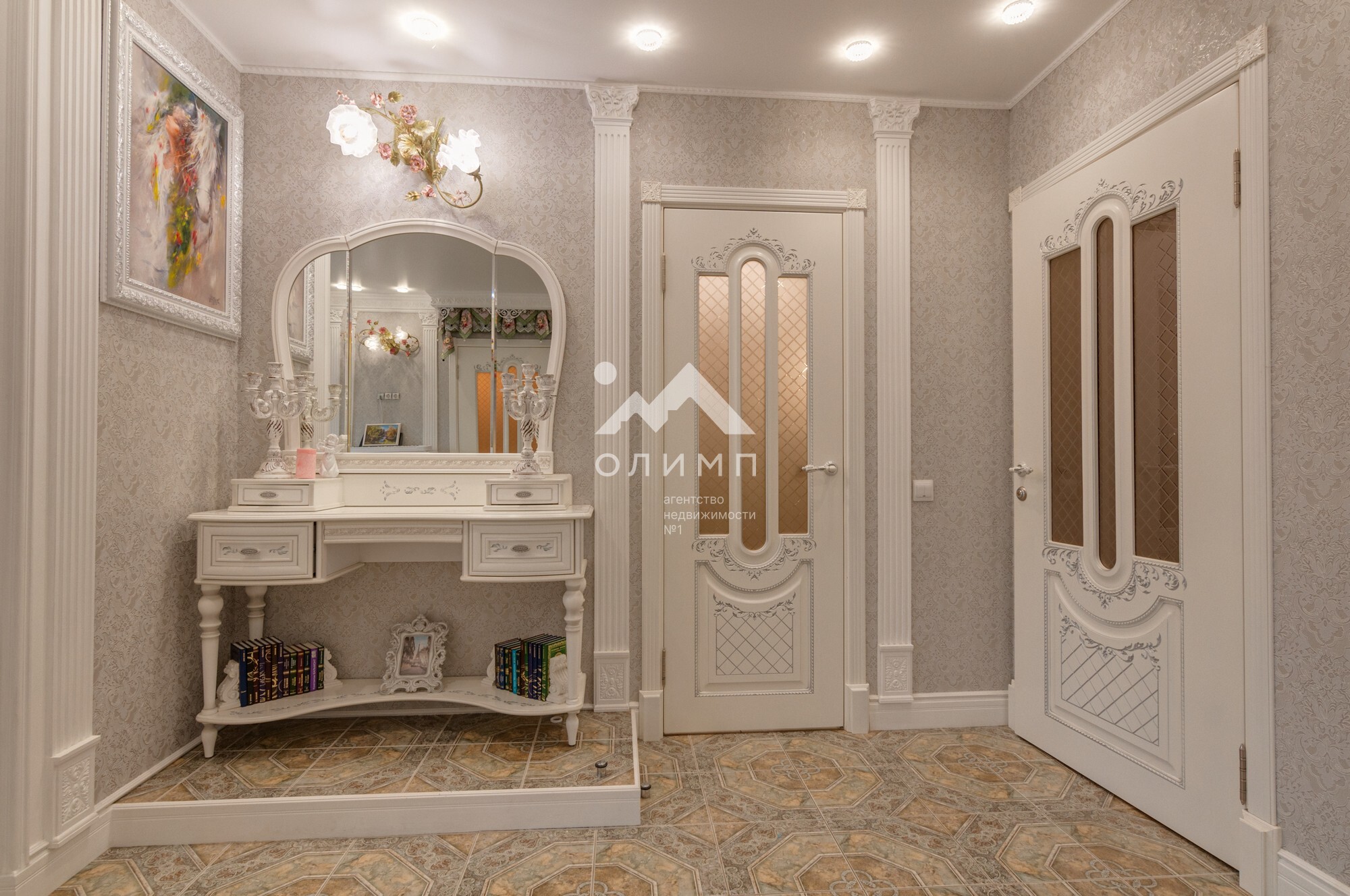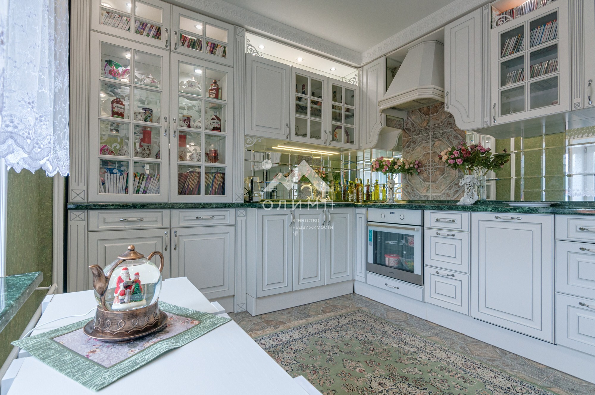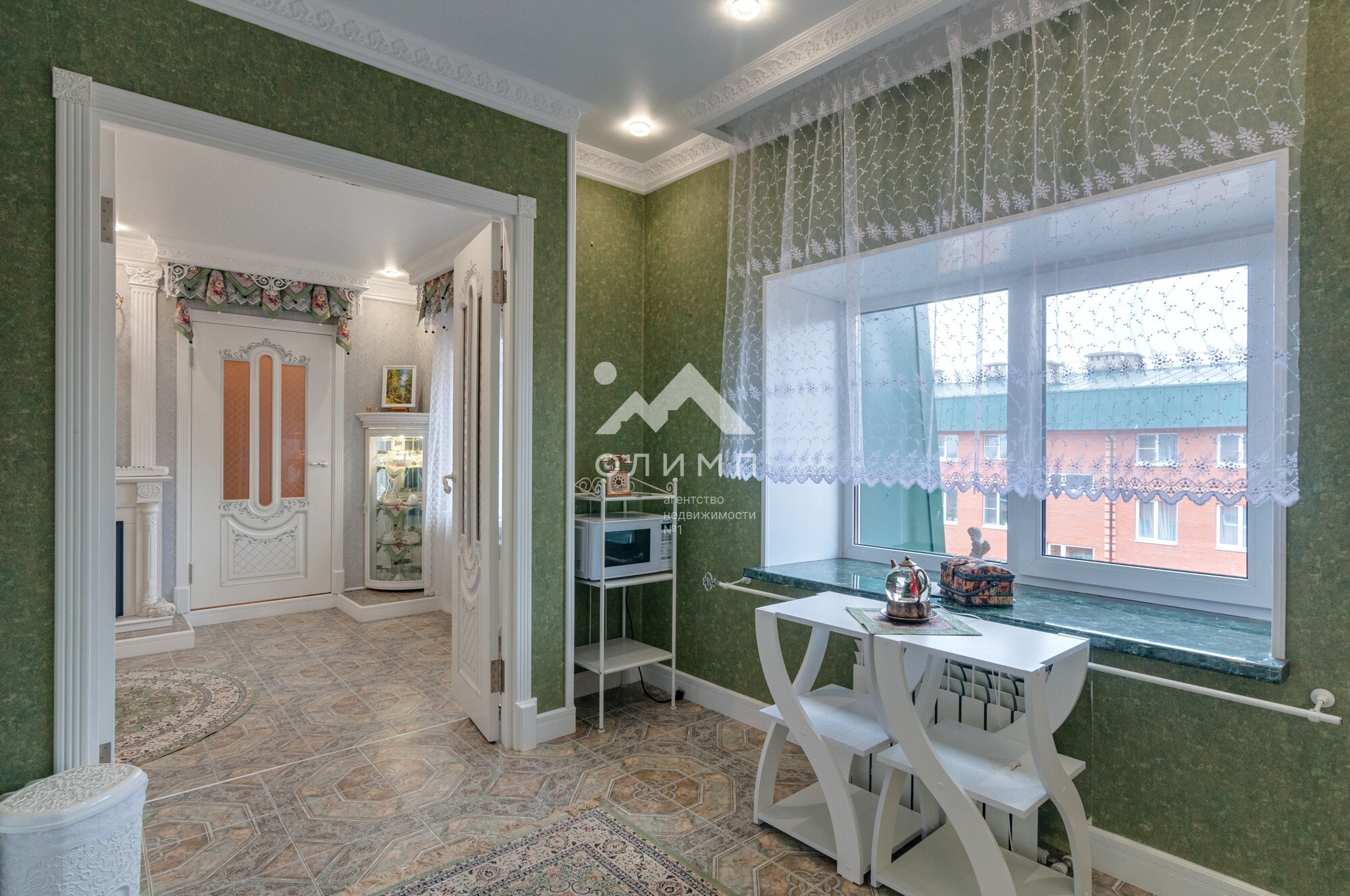 В квартире выполнен элегантный евроремонт, где каждая деталь продумана до мелочей. Плотное напольное покрытие из кафеля отличается практичностью и долговечностью, а натяжные потолки визуально расширяют пространство, создавая ощущение легкости и свободы. Цветовая палитра подобрана таким образом, чтобы создать атмосферу уюта и спокойствия. Кухонный гарнитур с зеркальным фартуком добавляет изысканности и привносит особую атмосферу для кулинарных экспериментов.