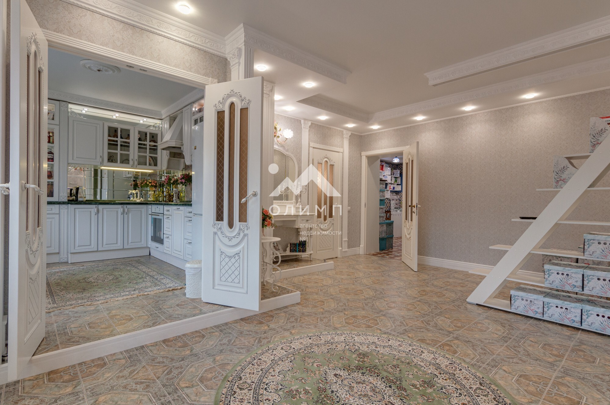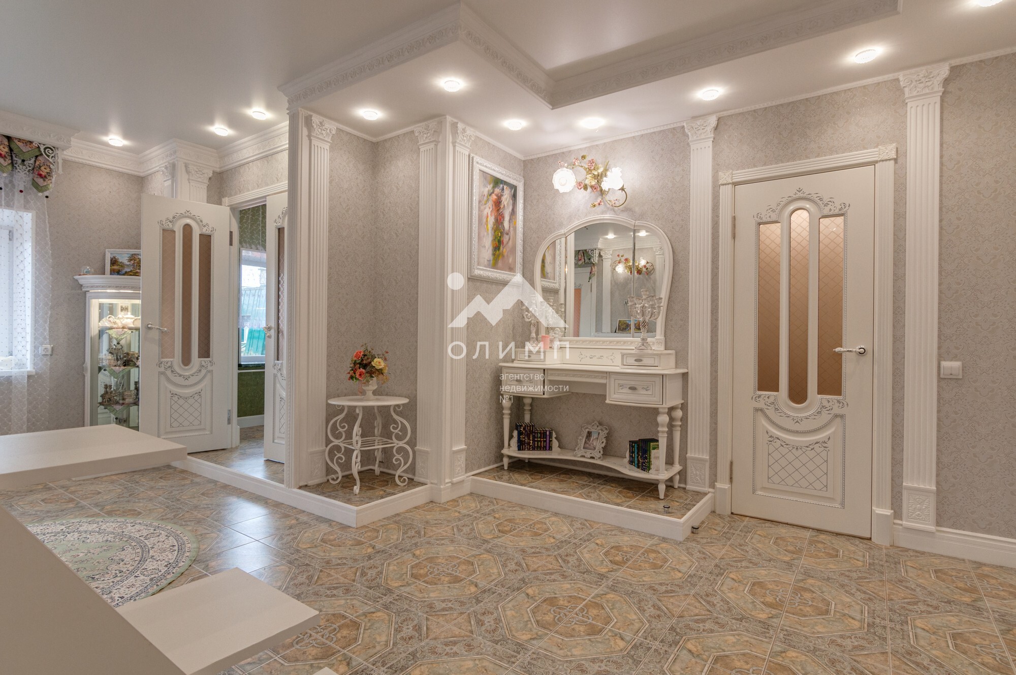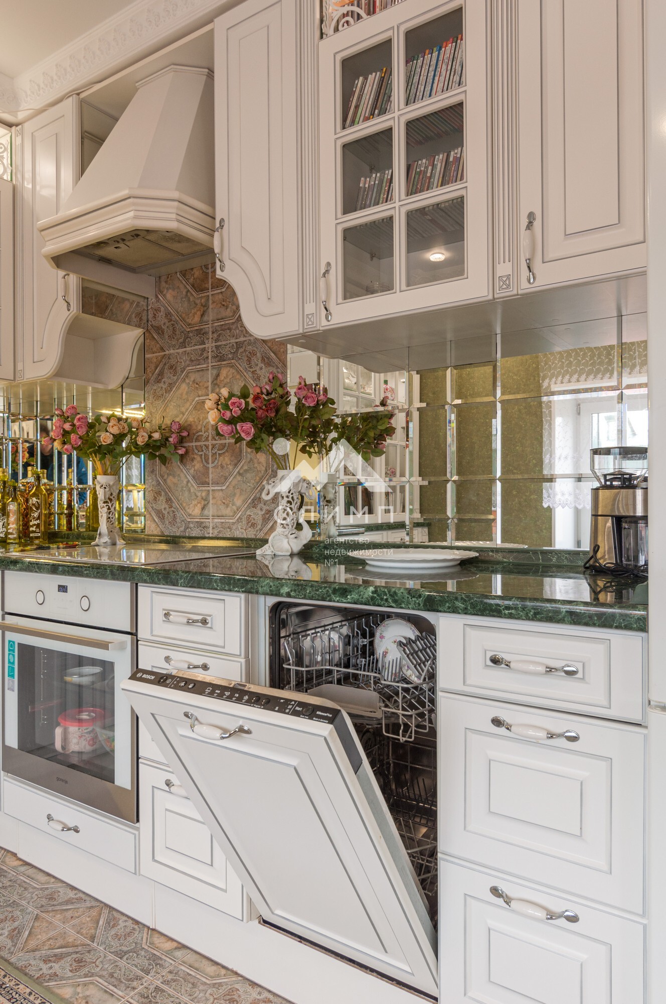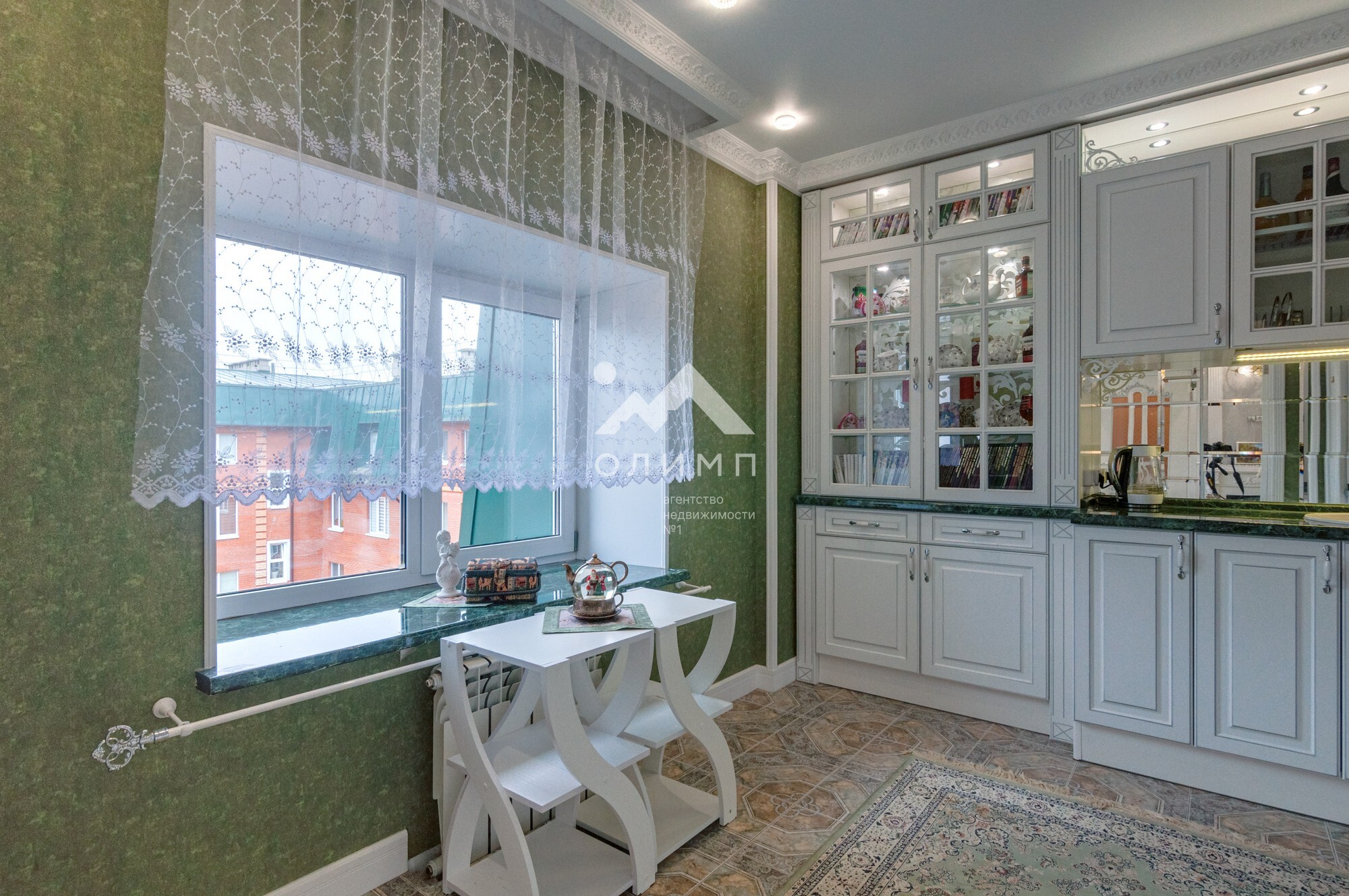 В квартире выполнен элегантный евроремонт, где каждая деталь продумана до мелочей. Плотное напольное покрытие из кафеля отличается практичностью и долговечностью, а натяжные потолки визуально расширяют пространство, создавая ощущение легкости и свободы. Цветовая палитра подобрана таким образом, чтобы создать атмосферу уюта и спокойствия. Кухонный гарнитур с зеркальным фартуком добавляет изысканности и привносит особую атмосферу для кулинарных экспериментов.