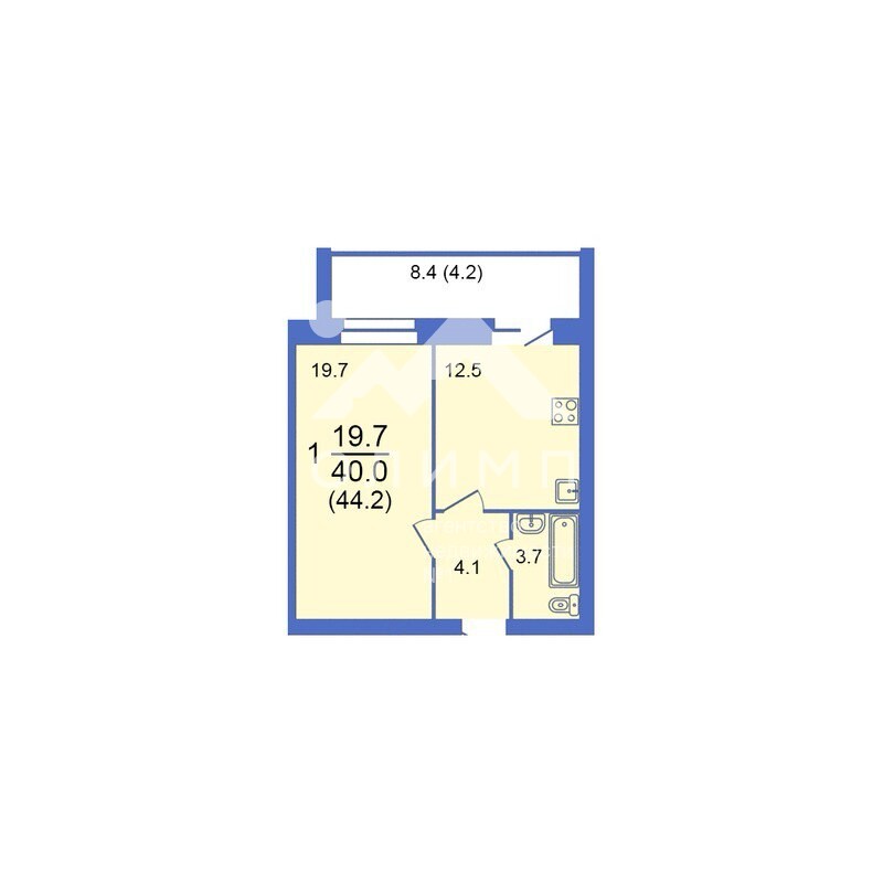 Общая площадь 44.2 м²