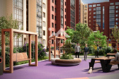 Стильный фасад выполнен из цветного керамического кирпича, устойчивого к внешним воздействиям. Качественное остекление, дизайнерская отделка подъездов и брусчатка на тротуарах создают современный облик комплекса. Подъезды на уровне нулевого этажа - никаких ступеней и пандусов.