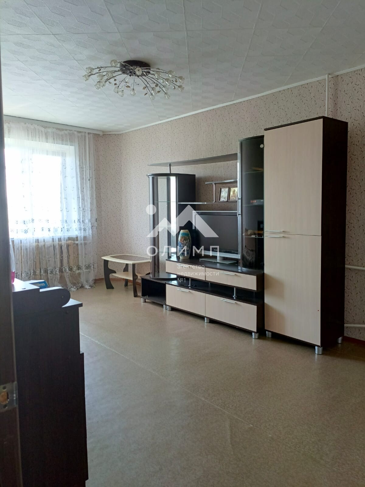 Остаётся мебель: кухня, диван, стенка, холодильник.