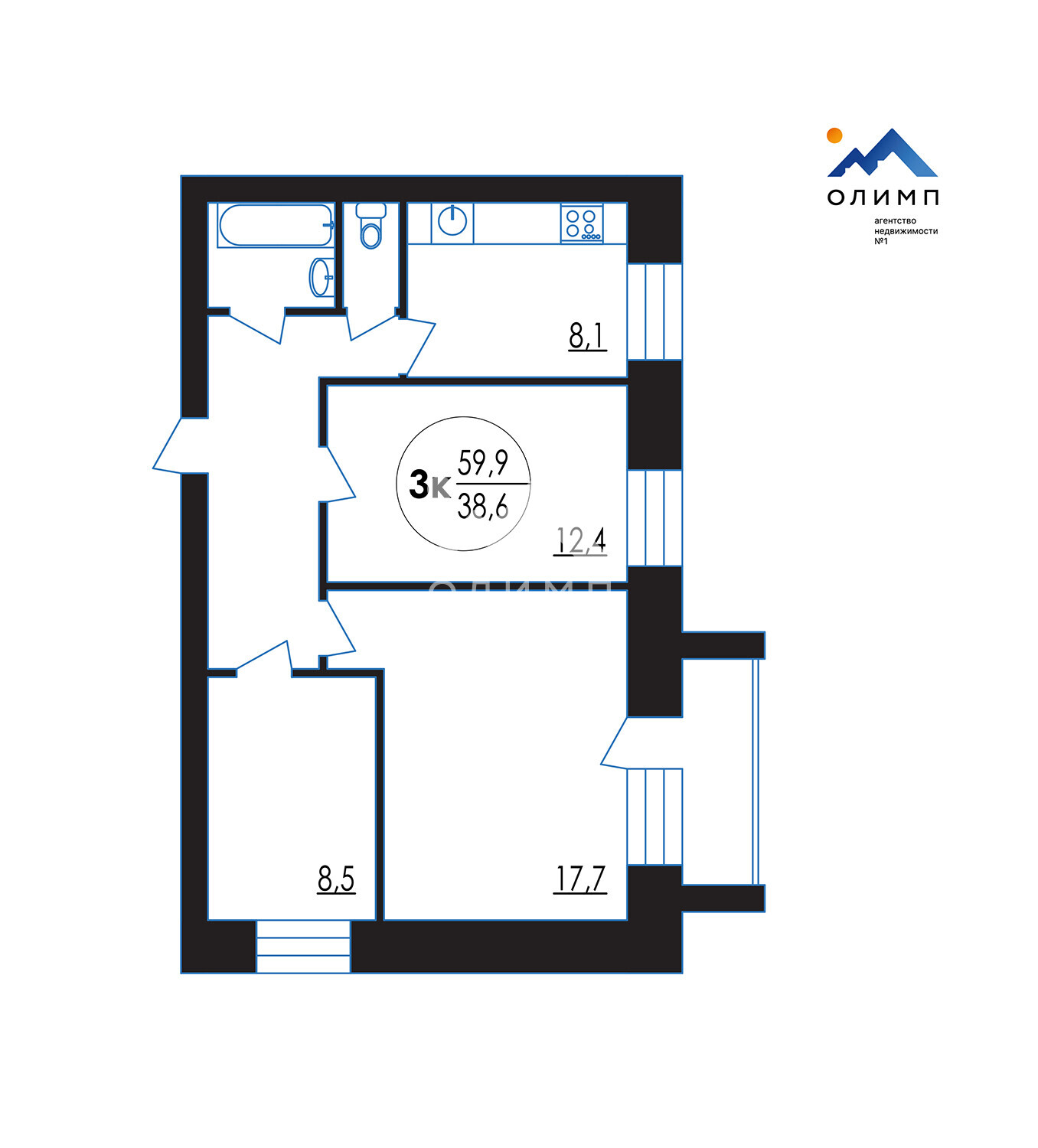 Здесь вас ждут три изолированные комнаты, предоставляющие каждому члену семьи личное пространство. Кухня площадью 8,1 квадратных метров – это сердце квартиры, где можно воплощать кулинарные фантазии и собираться за семейным столом.