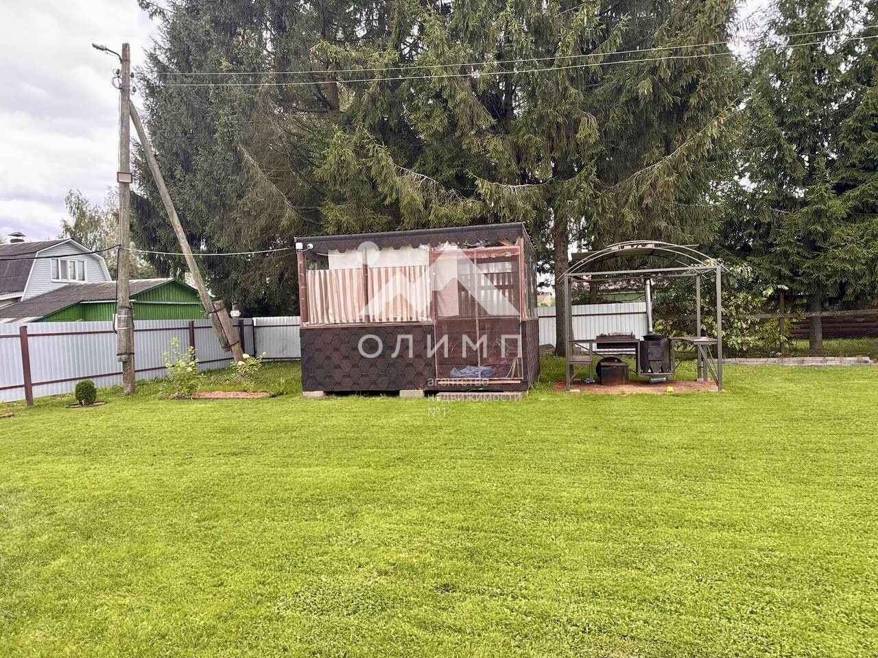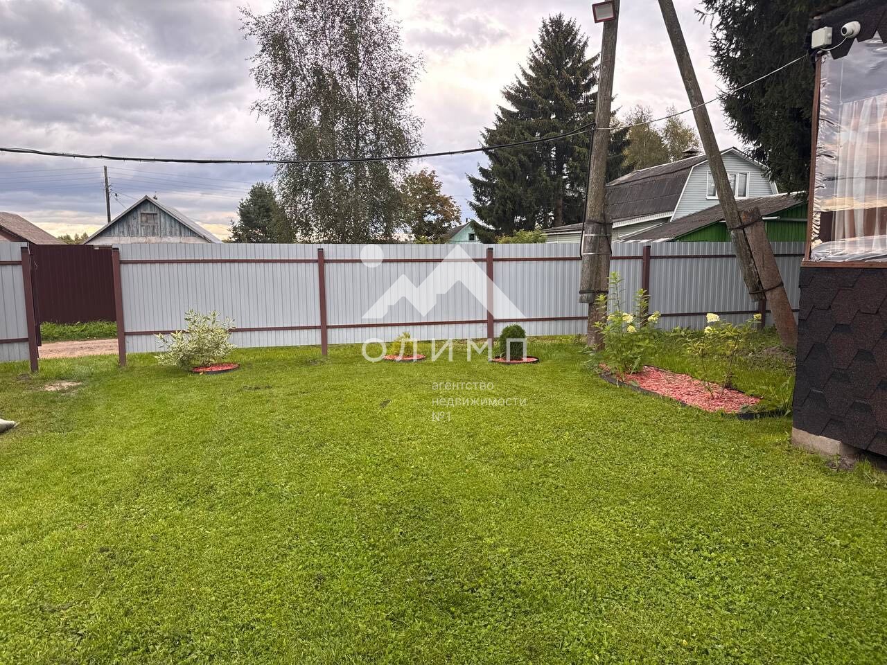 · Весь участок засеян газоном, по периметру установлен забор.